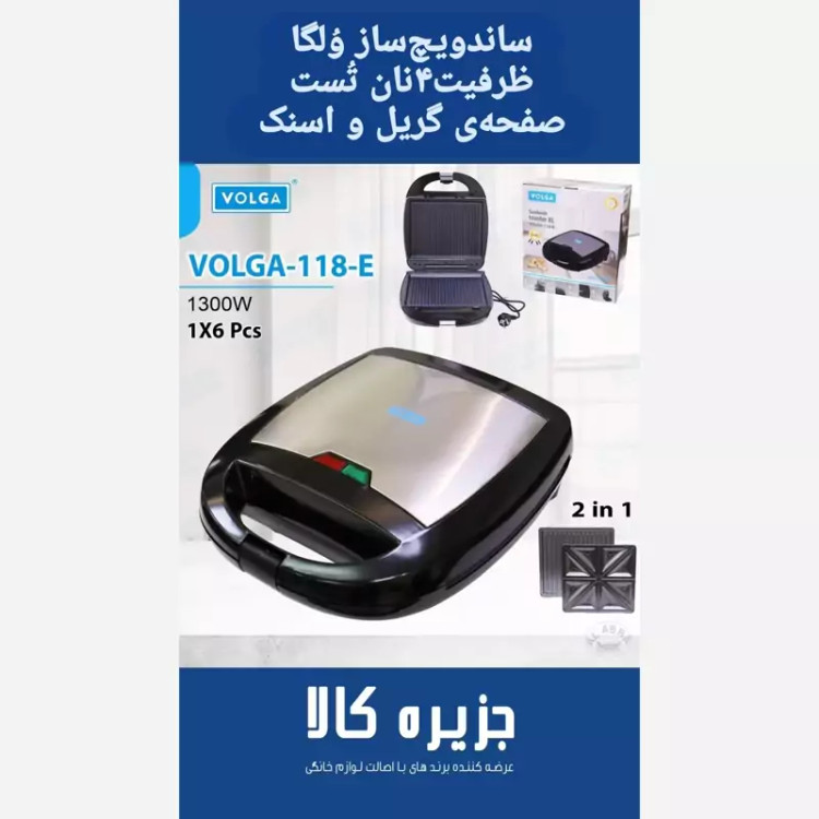 اسنک ساز - ساندویچ ساز وُلگا مدل 118 تعداد صفحه دو عدد تعداد درگاه ساندویچ سهگوش هشت عدد تعداد خانه چهار عدد دستگاه آمادهسازی غذا تابه نچسب امکانات آماده سازی غذا گریل نوع برقی مقاوم در برابر جذب لکه توضیحات صفحه دارای دو صفحه ی جدا شونده مخصوص اسنک و گریل حداکثر توان مصرفی 1300 وات گارانتی کتبی 18 ماهه