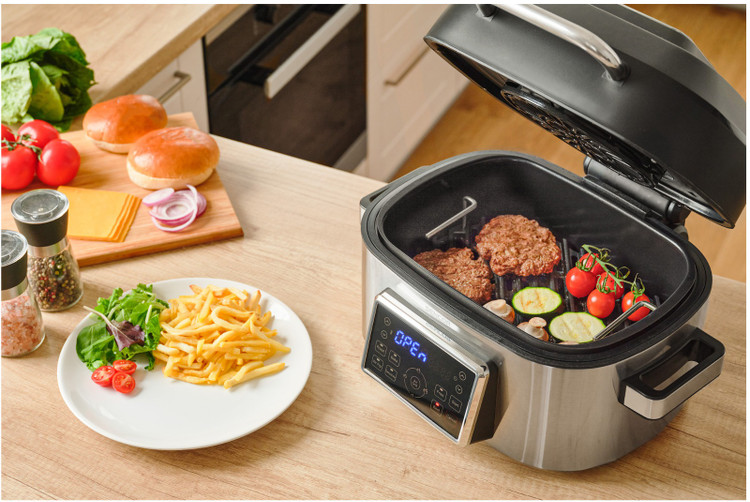 سنکور عالی SBG8900SS با هفت برنامه مختلف. 7 برنامه از پیش تعیین شده: برشته کردن / پخت / سرخ کردن در هوا / خشک کردن / سیب زمینی سرخ کرده / گوشت گاو / کبابی هوا صفحه نمایش LED با تنظیم زمان و دما تنظیمات کنترل گریل: کم / متوسط / زیاد / درجه حرارت وسیع 40 درجه سانتیگراد - 265 درجه سانتیگراد سیستم سرخ کردن بدون روغن گرمایش گردش هوا برای بهترین نتایج پخت قابلمه جداشدنی با روکش نچسب برای تمیز کردن آسان درب لمسی خنک لوازم جانبی: سبد سرخ کردنی / تابه گریل