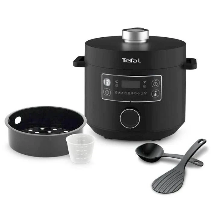 زودپز برقی تفال مدل CY754840 – سرعت، راحتی و کیفیت در آشپزخانه شما زودپز برقی تفال مدل CY754840 یکی از جدیدترین محصولات برند معتبر تفال است که با طراحی چندکاره و استفاده از فناوریهای پیشرفته، آشپزی را سادهتر، سریعتر و لذتبخشتر میکند. اگر به دنبال دستگاهی هستید که بتواند چندین وسیله آشپزخانه را برایتان یکجا جایگزین کند و در عین حال طعم و کیفیت غذاهایتان را حفظ نماید، این مدل انتخابی ایدهآل است. این دستگاه با ظرفیت 5 لیتر و توان مصرفی 1000 وات طراحی شده است تا برای خانوادههای 4 تا 6 نفره پاسخگوی تمام نیازهای روزانه آشپزی باشد. محفظهی کروی (Spherical Bowl) که حرارت را به صورت 360 درجهای پخش میکند، باعث میشود غذاها نرمتر، آبدارتر و خوشطعمتر شوند. همچنین وجود سیستم پخت تحت فشار (Pressure Cooking) کمک میکند غذاها تا سه برابر سریعتر از روشهای سنتی آماده شوند؛ بنابراین حتی در روزهای شلوغ هم میتوانید بدون صرف زمان زیاد، یک وعدهی سالم و کامل تهیه کنید. این زودپز فقط یک وسیله ساده نیست؛ بلکه 10 برنامه خودکار دارد که میتواند کار چندین دستگاه را برای شما انجام دهد. با این مدل میتوانید: خورش و استیک درست کنید سبزیجات را بخارپز کنید نان و کیک بپزید بهصورت آرامپز (Slow Cook) غذا بپزید سوپ، برنج، ماست یا حتی فرنی تهیه کنید علاوه بر این برنامهها، حالت Manual Mode به شما این امکان را میدهد که زمان و دما را طبق سلیقه خودتان تنظیم کنید. این یعنی شما هم میتوانید از تنظیمات آماده استفاده کنید و هم هر دستور پخت خاصی را که دوست دارید شخصیسازی کنید. کاربری آسان حتی اگر تجربه زیادی در آشپزی با زودپز برقی نداشته باشید، این مدل بهسادگی قابل استفاده است. تنها کافیست با یک دکمه چرخان (Dial) برنامه را انتخاب کنید، زمان یا دما را تغییر دهید و اگر بخواهید شروع کار را با تاخیر (Delay Start) تنظیم کنید. بعد از پایان پخت، دستگاه به صورت خودکار غذا را گرم نگه میدارد. دیگر نیازی به مراقبت دائمی یا نگرانی برای سوختن غذا نیست. تمیزکاری آسان و طراحی مقاوم کاسه پخت با روکش نچسب بهراحتی تمیز میشود. کافی است پس از پخت، کاسه را با یک دستمال پاک کنید یا به کمک ماشین ظرفشویی شستوشو دهید. بدنهی دستگاه از پلاستیک مقاوم و فلز با کیفیت ساخته شده که هم سبک است و هم دوام بالایی دارد.