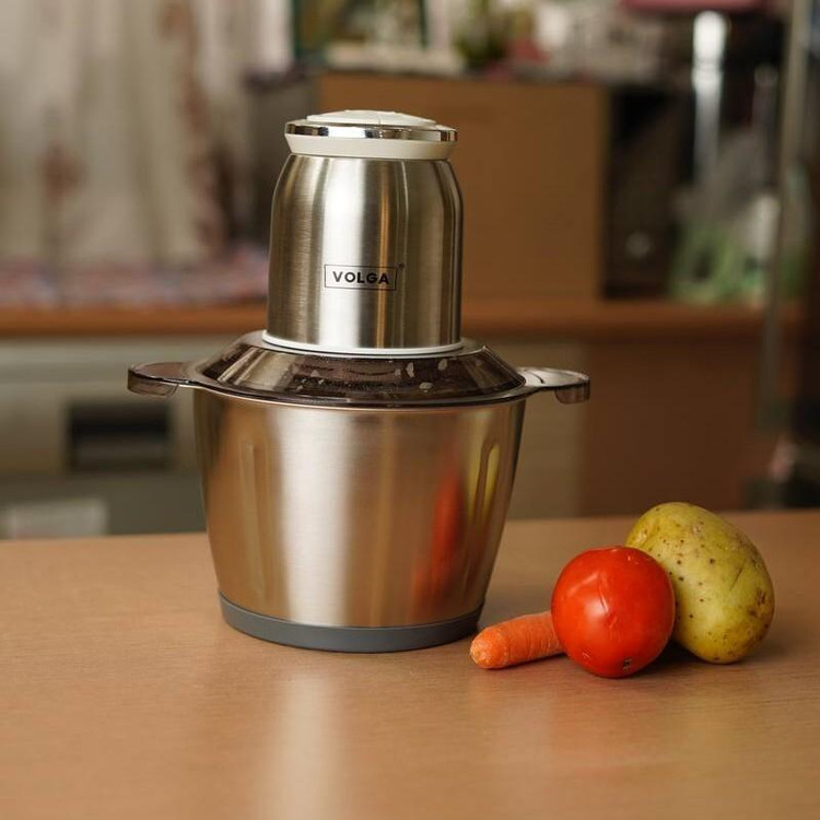 خردکن وُلگا دارای کاسه از جنس استیل با ظرفیت ۳ لیتر موتور ۵۰۰ وات ۲ سرعته تیغه استیل باکیفیت و ۴ پره مناسب جهت خردکردن انواع سبزیجات (پاز و گوجه و...) جهت تهیه مواد کتلت و انواع کوکو جهت خرد کردن انواع گوشت لخت و بدون استخوان و غیر منجمد