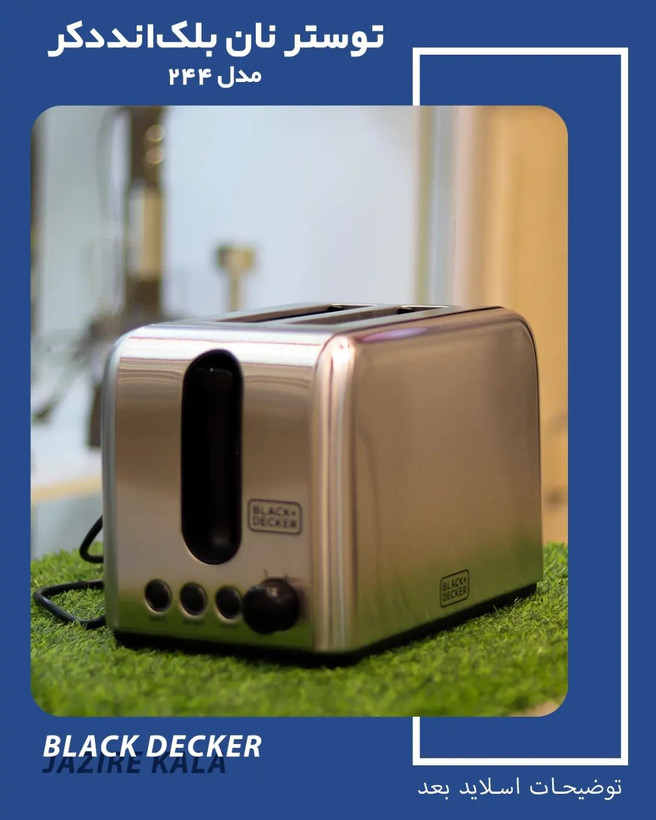 توستر نان بلکانددکر مدل 244 توان 1050 وات جنس بدنه استیل دارای تایمر 1 تا 6 دقیقه عملکرد یخ زدایی مناسب جهت گرم کردن و تست انواع نان دارای سینی جمع آوری خرده نان اورجینال