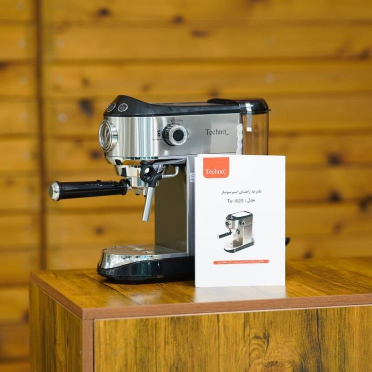اسپرسوساز تکنو مدل TE-820 توان 1450 وات پمپ اُلکا ایتالیا باقدرت فشار 20 بار جنس بدنه استیل دارای گرمکن فنجان نازل بخار استیل با خروجی آب جوش قابلیت تهیهی اسپرسو ، موکا ، کاپوچینود، لاته و ماکیاتو قطع کن خودکار در حالت دابل و سینگل دفترچه راهنمای فارسی و ضمانتنامهی کتبی 24 ماهه