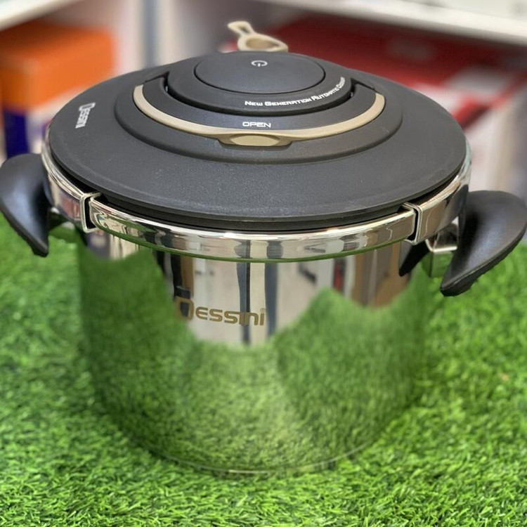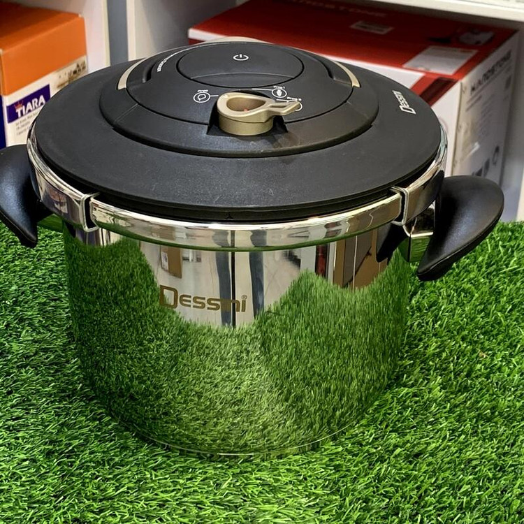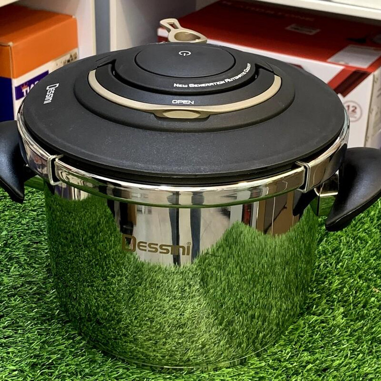 زودپز کلیپسو دسینی ظرفیت ۶.۵ لیتر درب ساخت ترکیه جنس بدنه دیگ استیل جنس کفه چدن روکش استیل دیگ ساخت ایران با نشان استاندارد حک شده دارای سوپاپ اطمینان گارانتی ۱۸ ماهه پرتاب افزار اورجینال