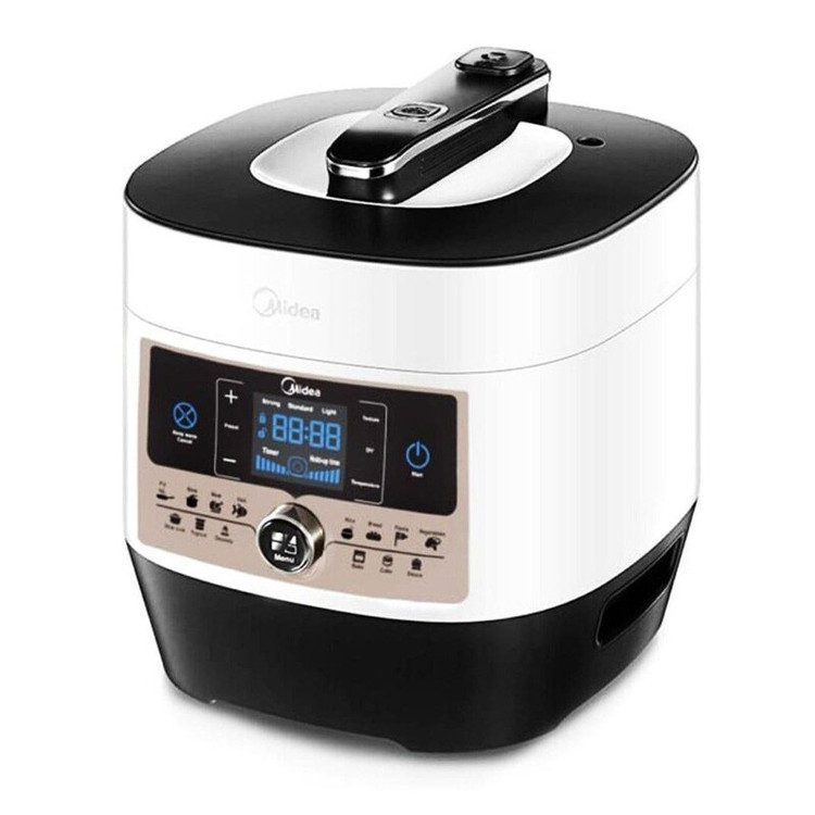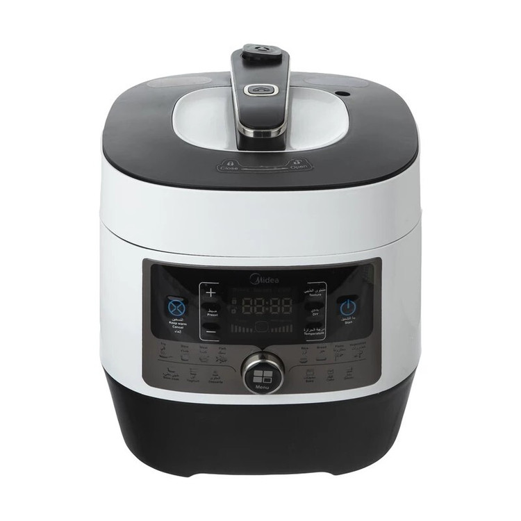 مولتی کوکر (زودپز برقی) میدیا مدل 6062 توان 1000 وات میزان فشار: 60 کیلو پاسکال پخت سریع انواع خورشت در کمترین زمان تحت فشار با ایمنی بالا دادای 12 برنامهی پیش فرض سرخ کردن ، خورشت ، گوشت ، مرغ ، آرام پز ، برنج ، سبزیجات ، بخارپز ، سوپ ، آبگوشت ، حبوبات ، کباب کردن دارای عملکرد : پلوپز، بخارپز؛، آرام پز، زودپز، سوپ ساز، سرخ کن، قابلیت گرم نگهدارنده پخت با تاخیر:تا 24 ساعت نشانگر سطح آب دارای تایمر بدنه استیل با عایق سرد قفل کودک دارای 9 سیستم حفاظت ایمنی برای اطمینان از پخت و پز جنس کاسه : روکش نچسب نمایشگر : LED